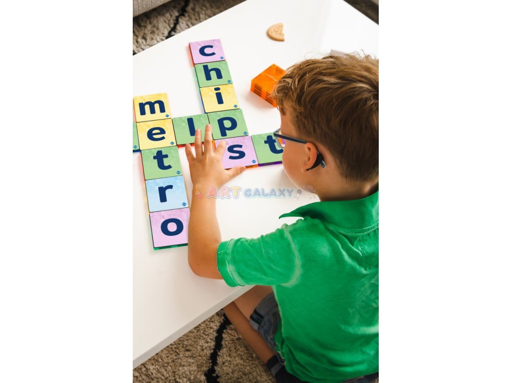 - Skládání slov: Děti mohou skládat svá jména, názvy předmětů nebo jednoduchá slova, což zlepšuje jejich schopnosti čtení a psaní.