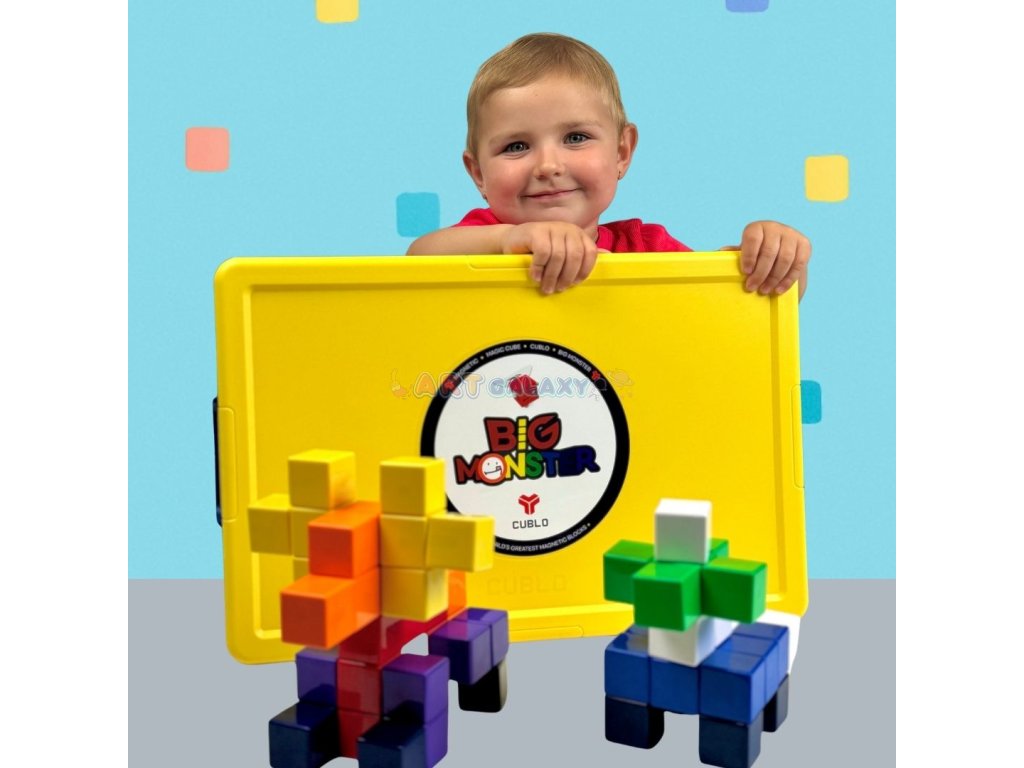 Big Monster je navržen speciálně pro nejmenší děti. Díky velkým, měkkým a lehkým dílům se s ní snadno manipuluje i batolatům. Silné a bezpečně ukryté magnety zajišťují stabilitu staveb, zatímco kulaté hrany a atraktivní barvy podporují smyslový rozvoj.