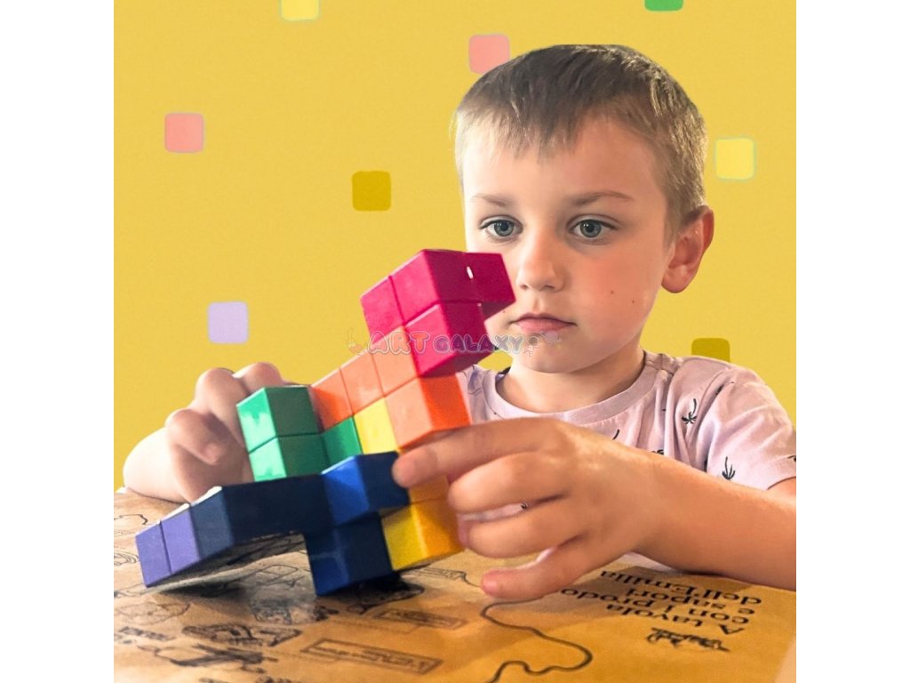 Soma Cube je unikátní 3D magnetická skládačka, která v dětech probouzí logické myšlení, trpělivost a schopnost řešit problémy. Cílem je složit z několika tvarově různých dílků dokonalou krychli – nebo další prostorové objekty podle zadání. Ideální pro starší děti, školáky i dospělé, kteří si chtějí hravou formou procvičit mozek.