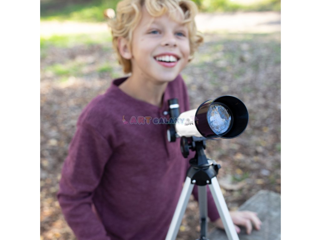 S dětským dalekohledem GeoSafari Vega 360™ od Learning Resources mohou mladí badatelé objevovat hvězdy, Měsíc i přírodu kolem sebe. Refraktorový dalekohled se 50 mm objektivem a antireflexní vrstvou poskytuje čistý obraz při zvětšení až 67×.