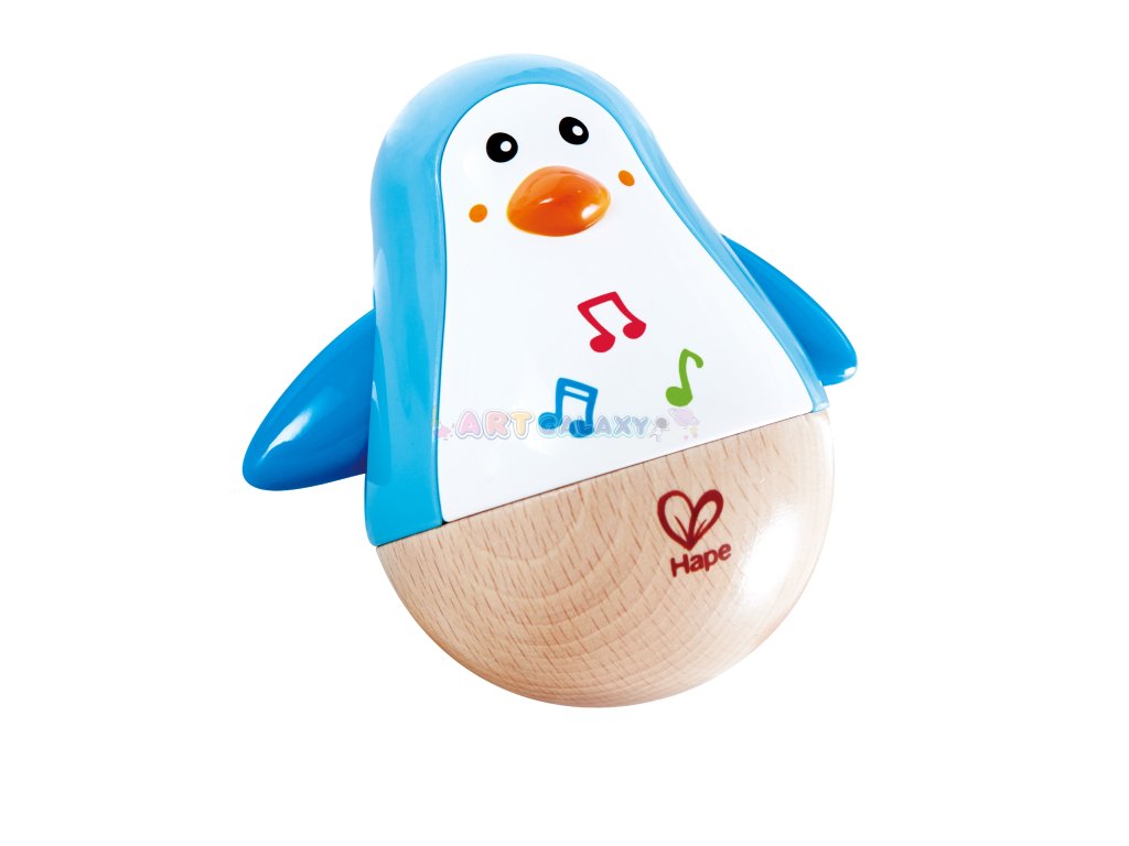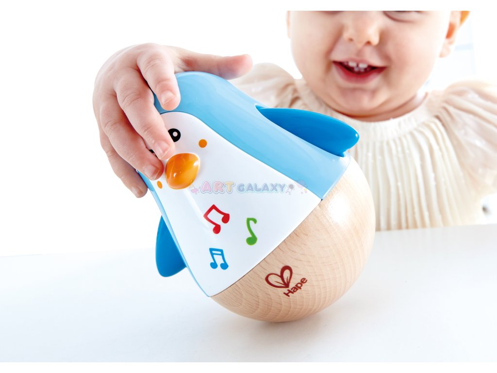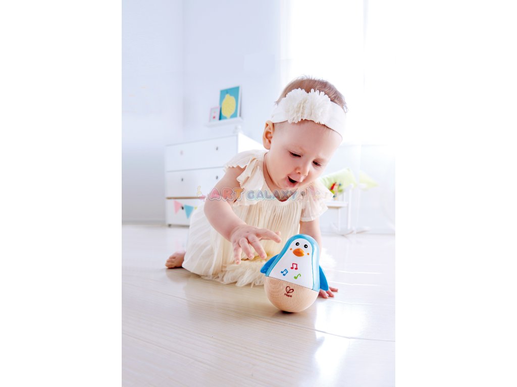 Zábavná dřevěná hračka v podobě roztomilého tučňáka, který se kývá, chrastí a vydává jemné zvuky. Podporuje rozvoj hrubé motoriky, koordinace a smyslového vnímání. Ideální první hračka pro batolata od 6 měsíců.