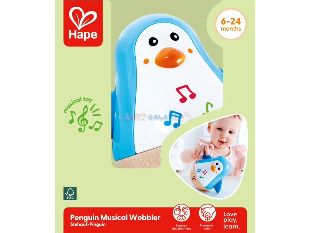 Tento roztomilý balanční tučňák od HAPE je perfektní první hračka pro vaše děťátko. Jeho zaoblený tvar zajišťuje bezpečné kývání, které stimuluje rozvoj rovnováhy a motorických dovedností. Dítě se ho může snažit postrčit, houpnout nebo obejmout – tučňák se vždy vrátí zpět a jemně zacinká.