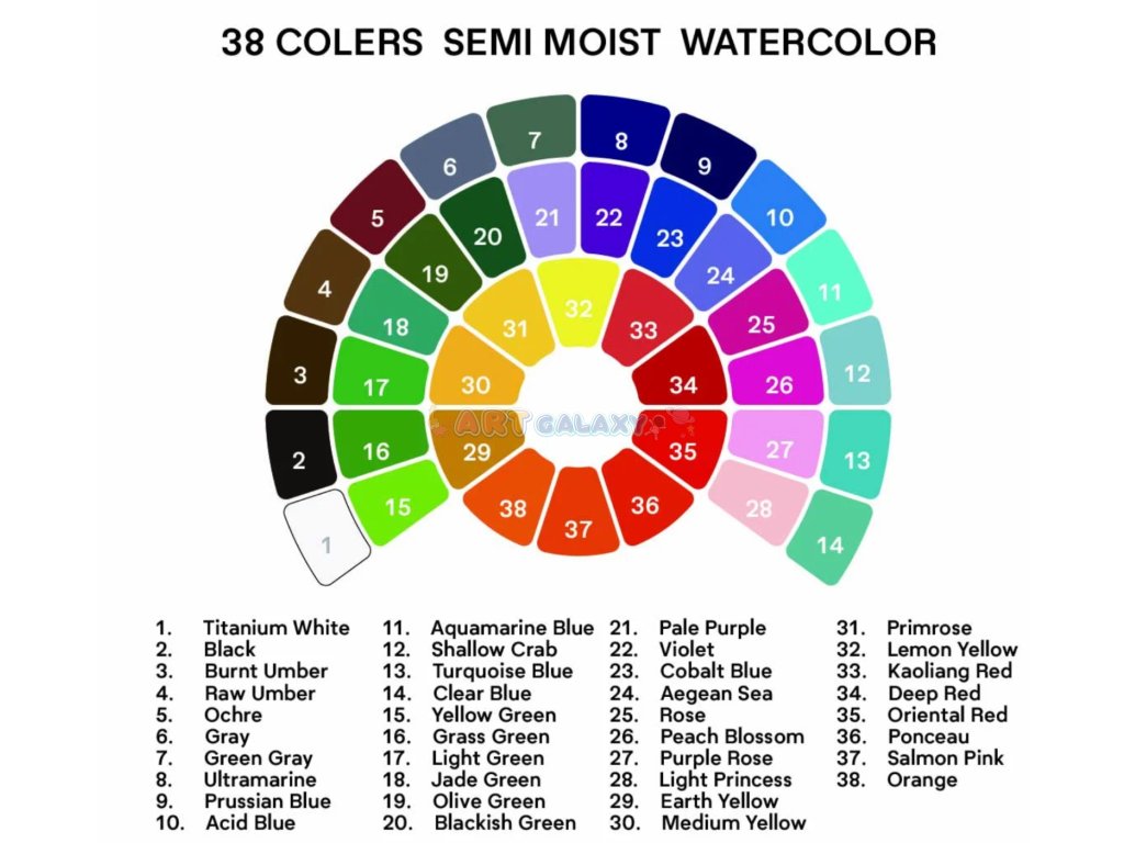 - Obsah balení: 38 akvarelových barev v pánvičkách