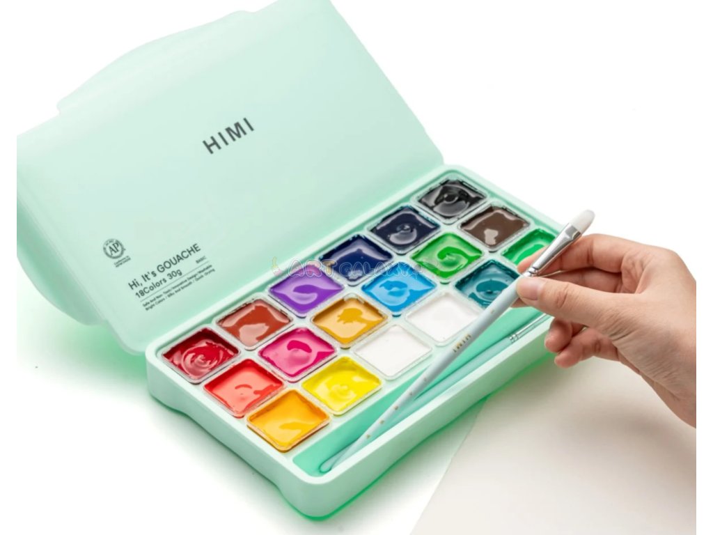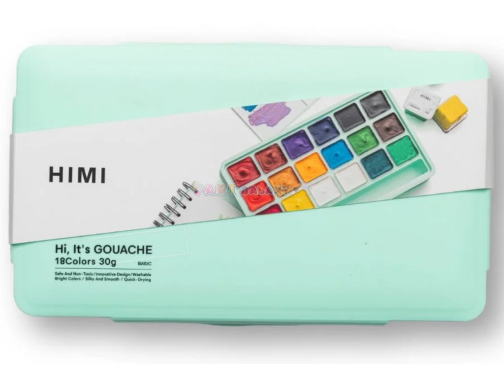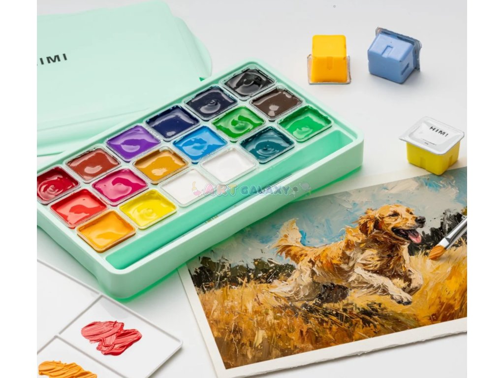 HIMI kvašové barvy - Jelly Cup Gouache Set - 18 Colours + 3 štětce - Green Edition