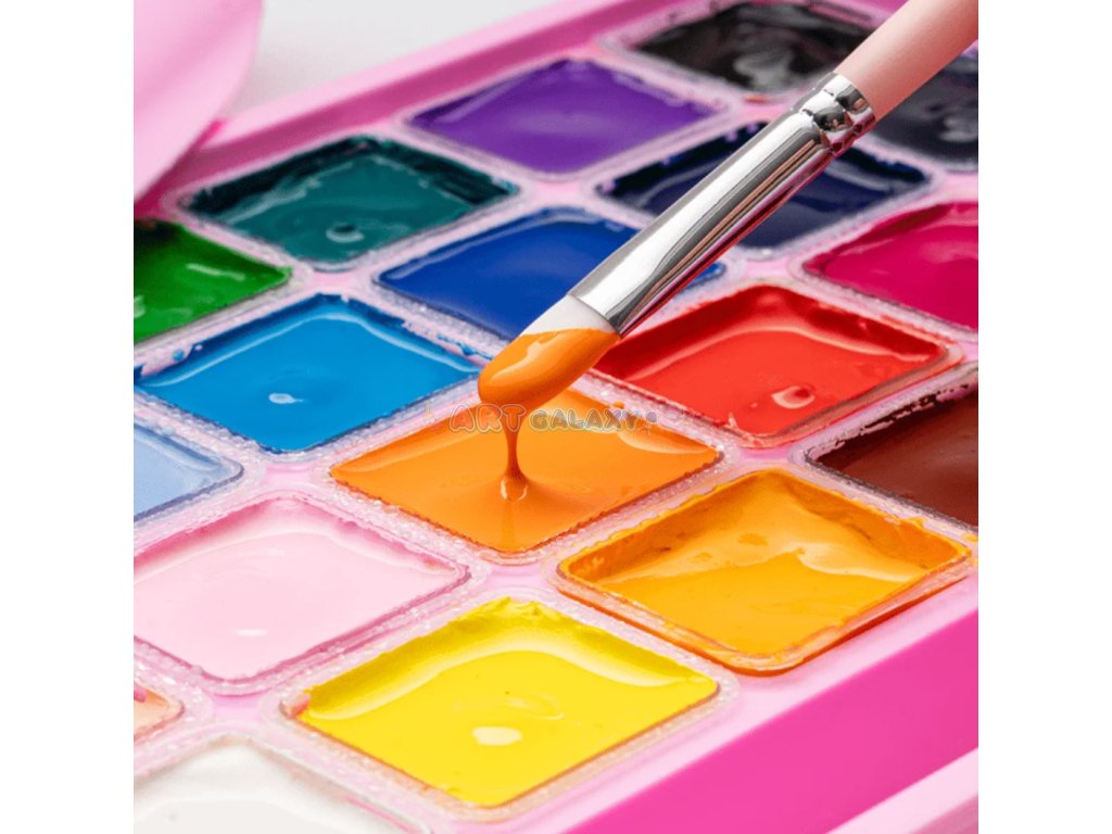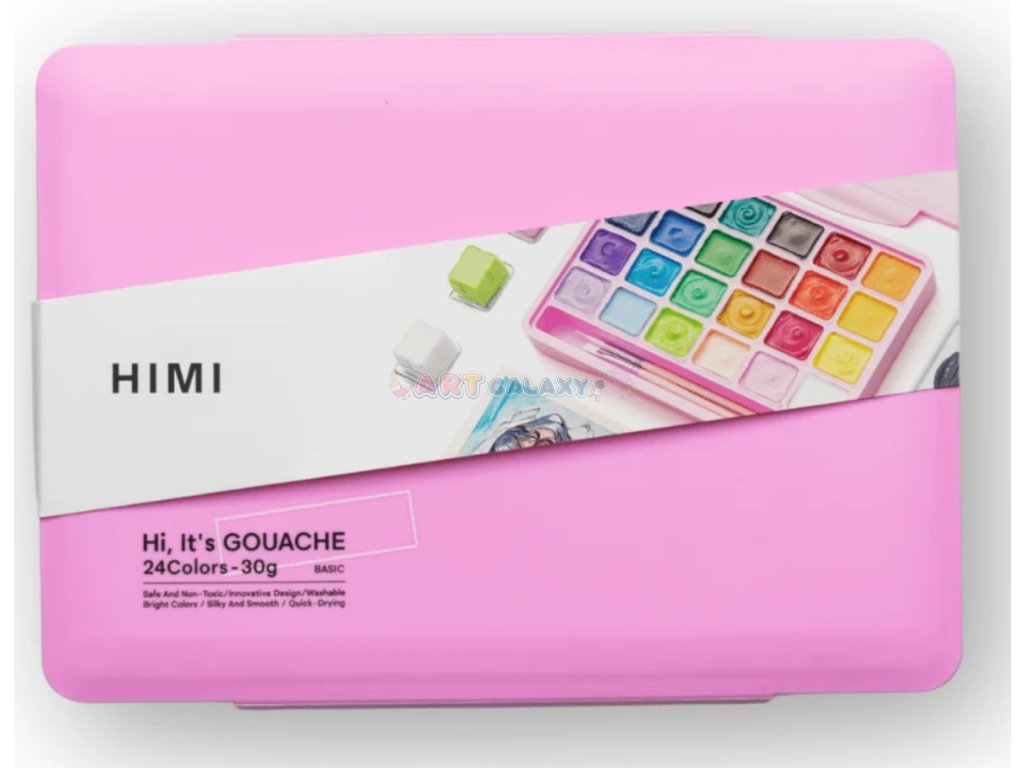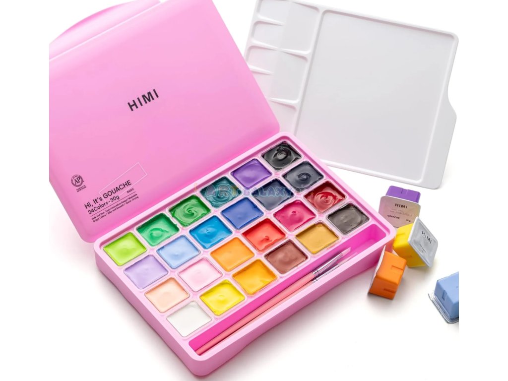 HIMI kvašové barvy - Jelly Cup Gouache Set - 24 Colours + 3 Brushes (Pink Case Edition)