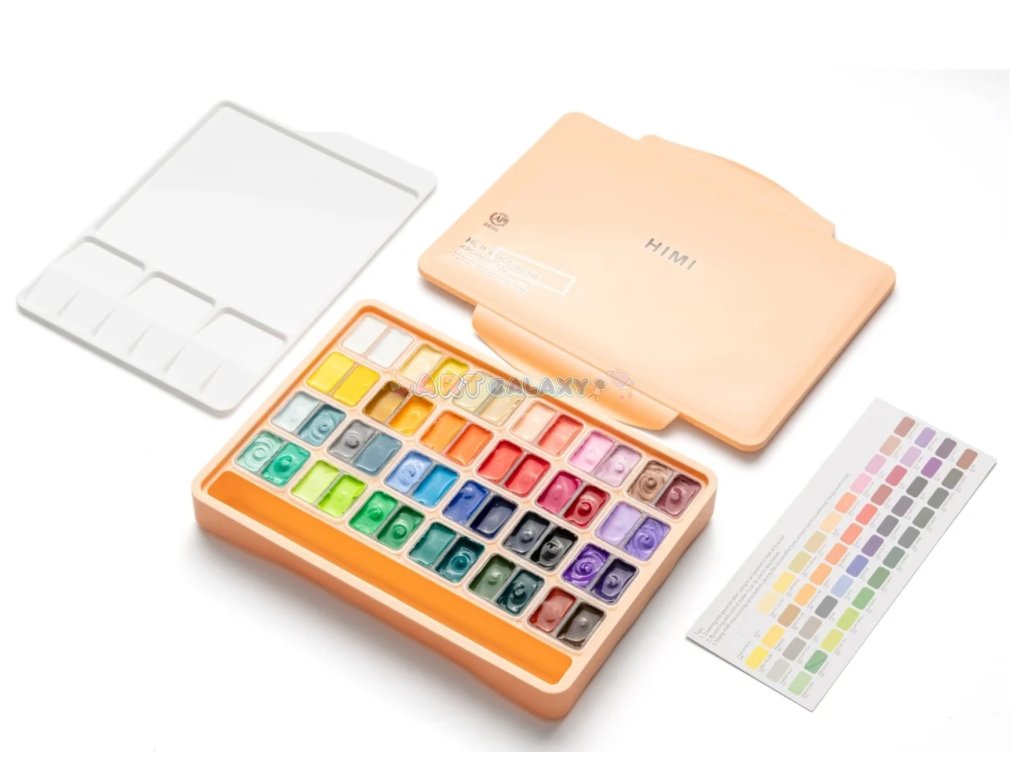 HIMI Twin Cup Gouache Set – 48 barev + 3 štětce v edici Peach Fuzz Case je dokonalým nástrojem pro umělecké duše všech úrovní. Syté, neprůhledné barvy v praktických kelímcích a tři kvalitní štětce v elegantním broskvovém kufříku ti poskytnou vše, co potřebuješ pro tvorbu doma, ve škole i na cestách.