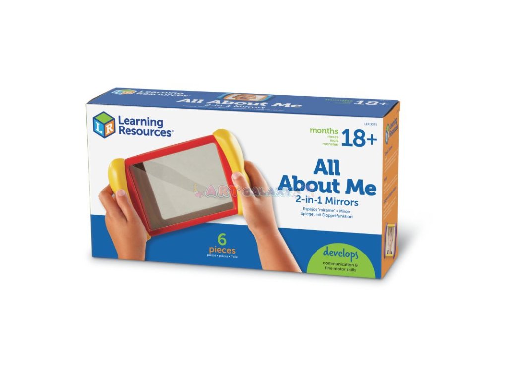 Sada All About Me 2-in-1 Mirrors umožňuje dětem bezpečně se pozorovat, bavit se zkreslenou reflexí a současně rozvíjet základní sociálně-emoční dovednosti. Použitím běžného i zábavného zrcadla se děti učí rozpoznávat své výrazy, rozvíjet slovní zásobu a schopnost vyjádřit, jak se cítí. Hračky jsou multifunkční a ideální pro využití doma i ve školkách.