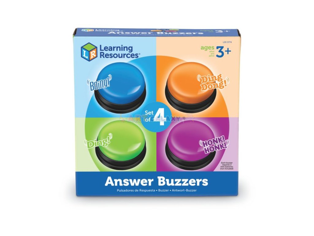 Zvuková tlačítka Answer Buzzers přinášejí zábavný způsob, jak oživit kvízy, soutěže i výuku. Každé tlačítko vydává jiný zvuk, díky čemuž děti okamžitě poznají, kdo se přihlásil.