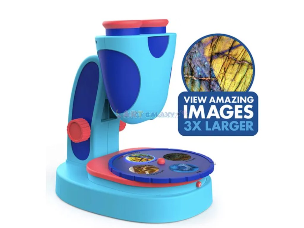 Dětský mikroskop KidScope nabízí 3× zvětšení, LED osvětlení a 15 diapozitivů se 60 obrázky, které probudí zvídavost malých badatelů.