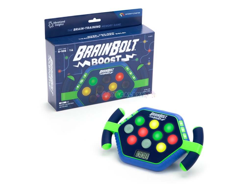 Hra BrainBolt® Boost od Learning Resources nabízí napínavou zábavu a zároveň pomáhá rozvíjet paměť, koncentraci a reakční schopnosti. Se třemi herními režimy a světelnými vzory, které je potřeba si zapamatovat a zopakovat, se tato kapesní hra stane skvělým společníkem doma i na cestách. Vhodná pro hráče od 7 let.