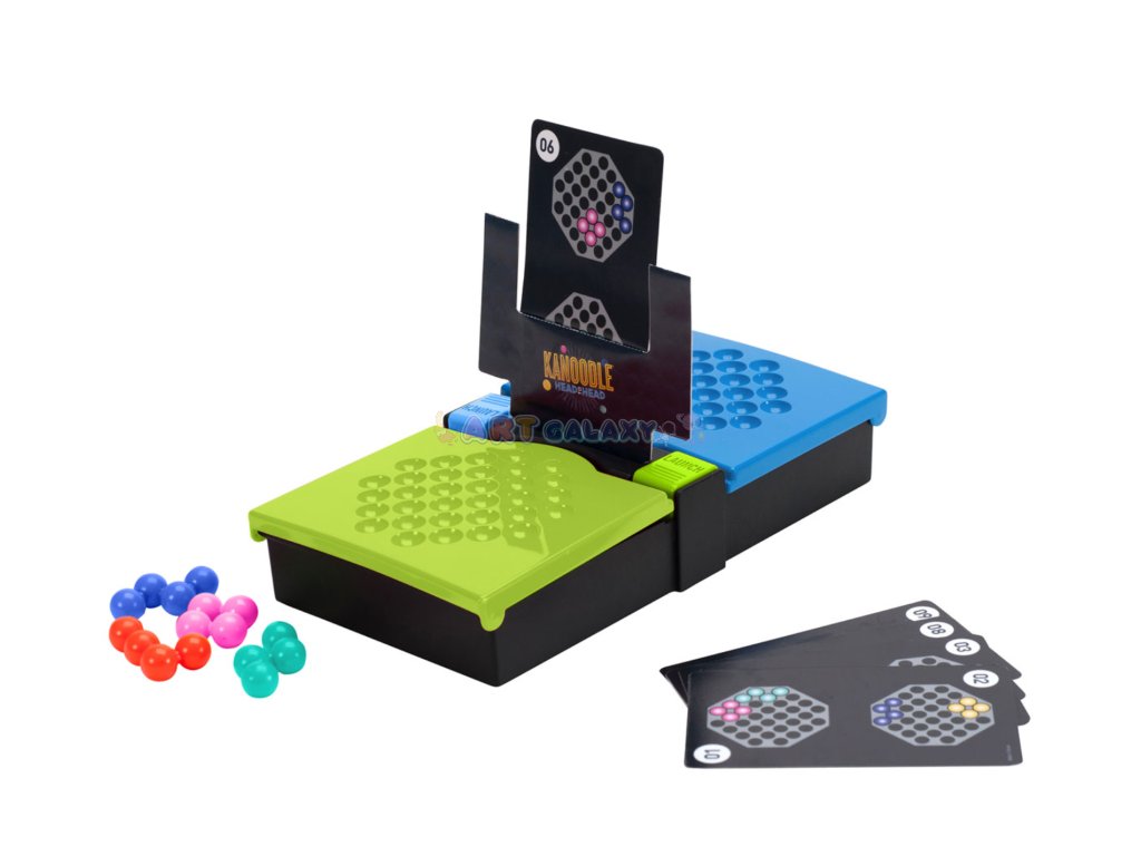 Tato soutěžní verze hry Kanoodle přináší napínavou zábavu pro dva hráče. Cílem je co nejrychleji složit prostorový hlavolam podle zadané karty. Kdo stiskne tlačítko jako první, vyhrává kolo!