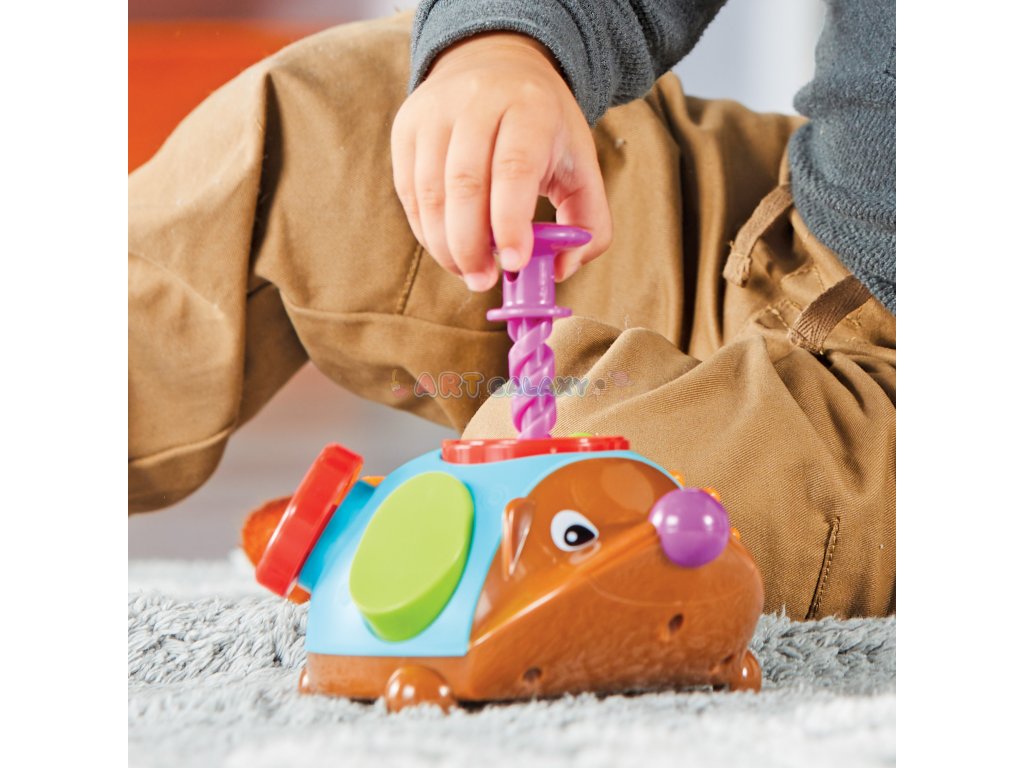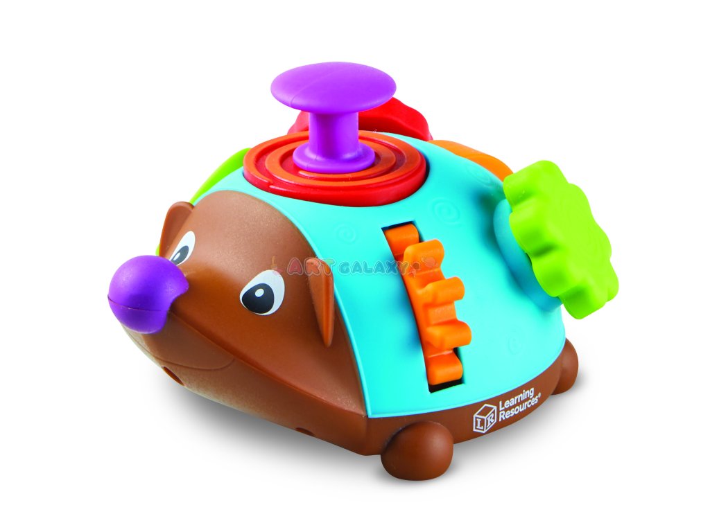 Interaktivní ježek je navržen tak, aby motivoval děti ke hře a zároveň posiloval jejich jemnou motoriku. Obsahuje otočné a posuvné části i mačkací tlačítko, díky kterým děti trénují prsty a koordinaci. Díky barevnému designu se děti učí poznávat barvy a zkoumají příčinu a následek jednotlivých pohybů. Hračka je bezpečná a vhodná i pro nejmenší děti.
