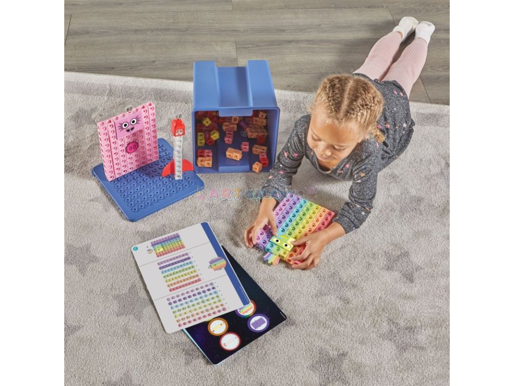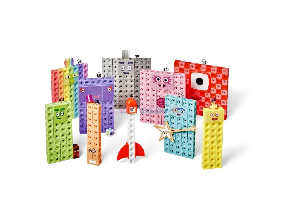 Velká učební sada Numberblocks, která učí děti desítky, stovku a hodnotu čísel pomocí kostek MathLink Cubes a jejich oblíbených hrdinů