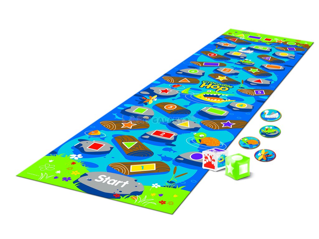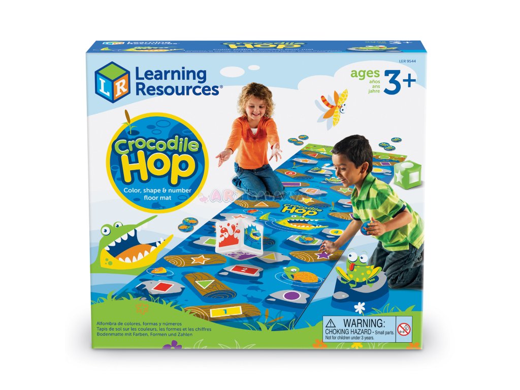 Crocodile Hop je podlahová hra, která spojuje pohyb a učení – děti při skákání po podložce rozlišují barvy, tvary a čísla.