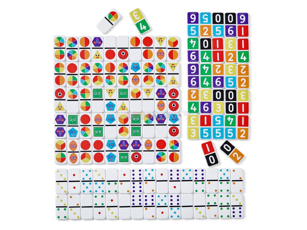 - Typy domin: Čísla, puntíky, kruhové segmenty, postavičky Numberblocks® (1–6)