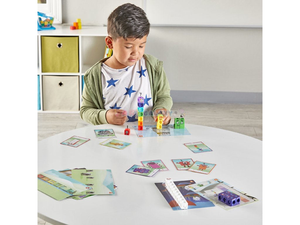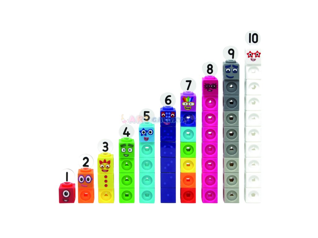 Každá kostka je navržena tak, aby odpovídala konkrétní postavě z Numberblocks. Díky štítkům, nálepkám a kartám s charakteristikami děti pochopí vztah mezi číslem, tvarem a množstvím.
