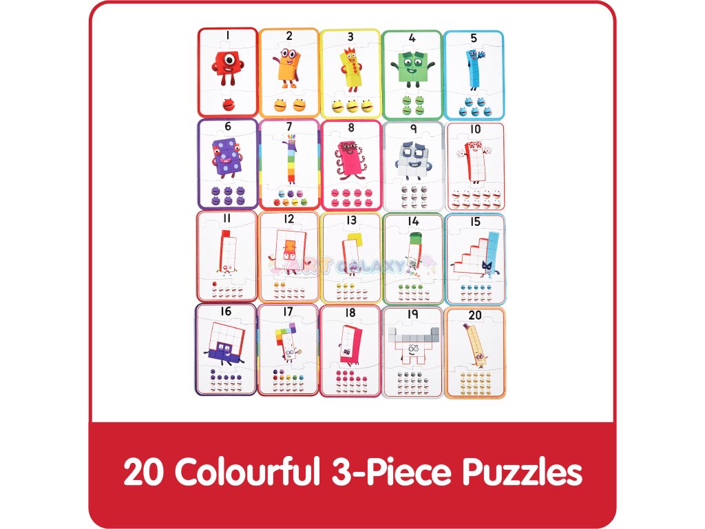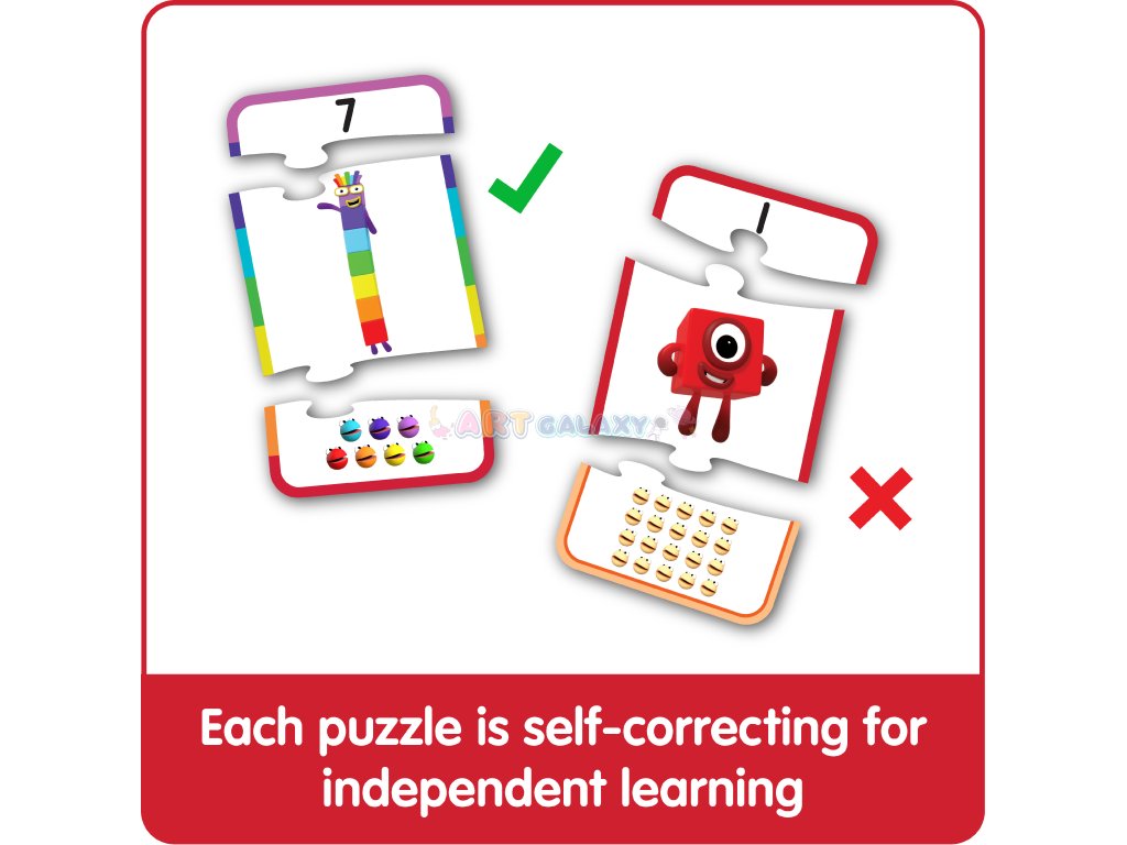 S touto sadou puzzle děti skládají čísla a postavičky Numberblocks od jedné do dvaceti. Každé puzzle má jedinečný tvar, takže ho lze složit jen správným způsobem, což podporuje samostatné myšlení a přináší dětem pocit úspěchu.