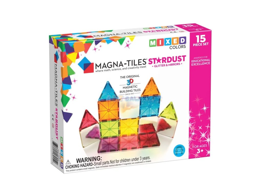 Objevte kouzlo tvoření s magnetickou stavebnicí Magna-Tiles Stardust (15 dílů) – jiskřivá sada plná třpytek a zrcátek, která rozvíjí fantazii, motoriku i prostorové vnímání dětí od 3 let.