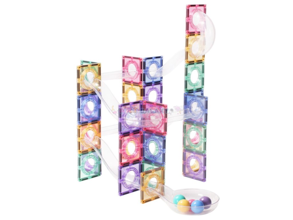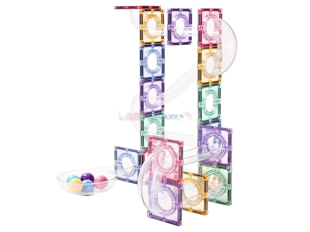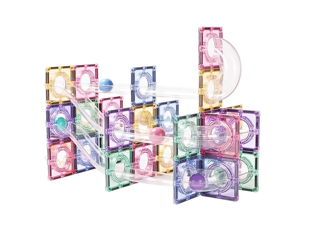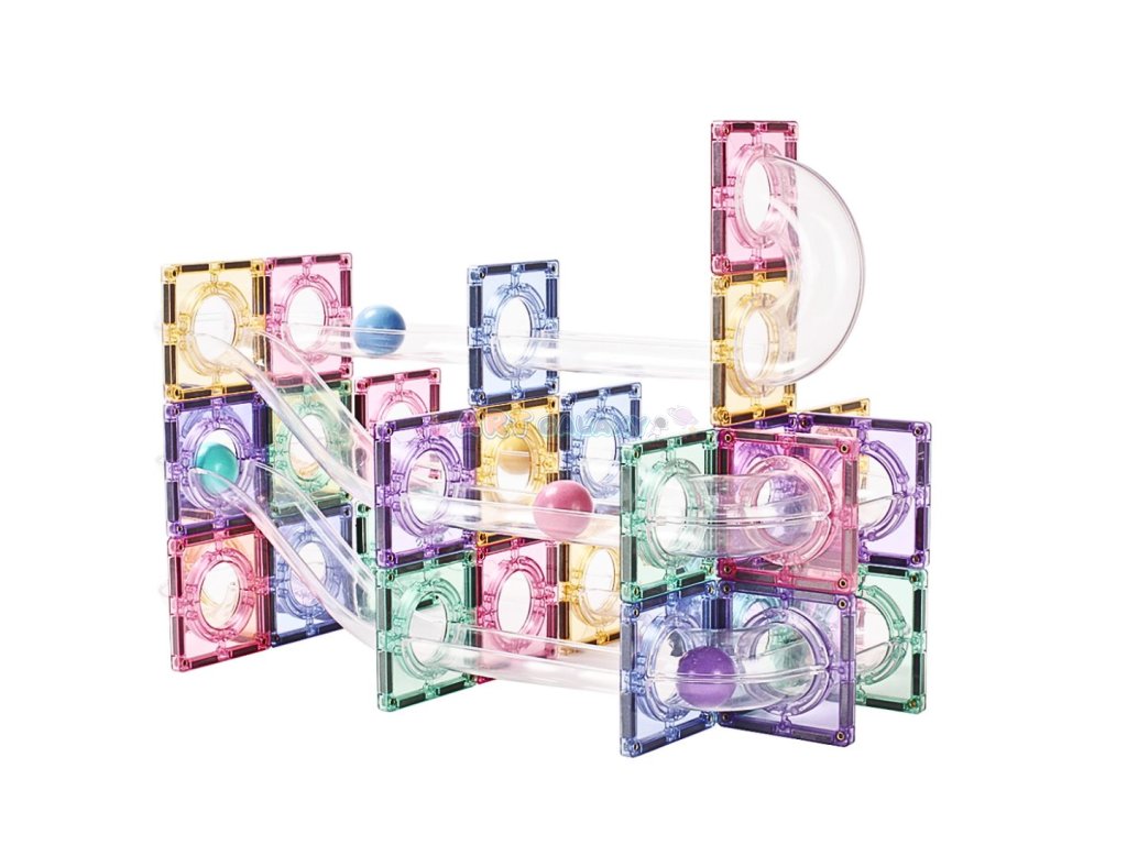 Tato pastelová magnetická kuličková dráha umožňuje dětem stavět vlastní konstrukce a sledovat pohyb kuliček v průhledných trubicích. Jemné barvy a stabilní magnetické spojení podporují klidnou a soustředěnou hru, která rozvíjí technické myšlení i kreativní přístup.