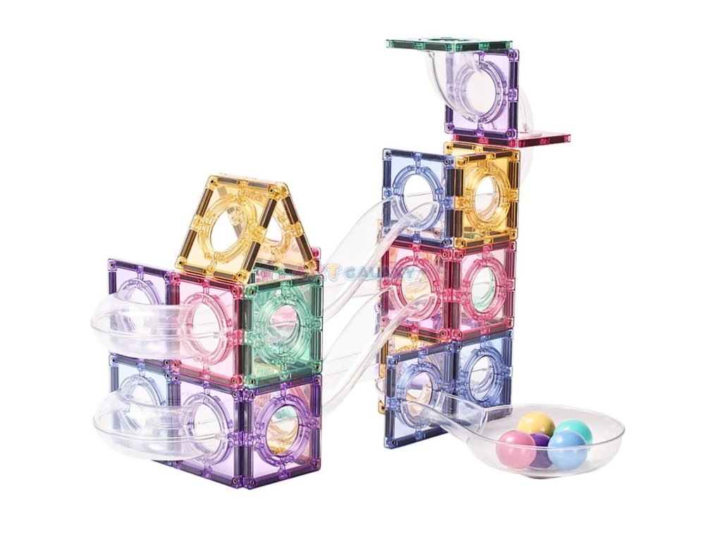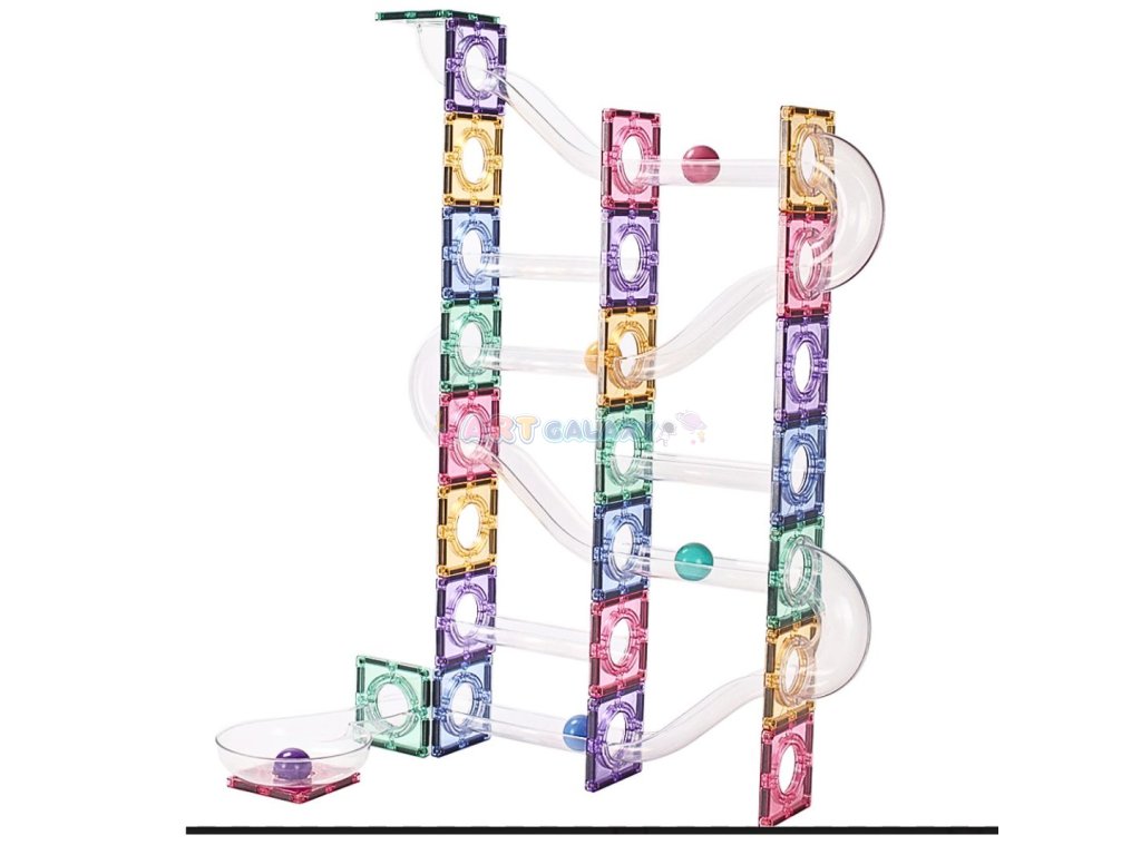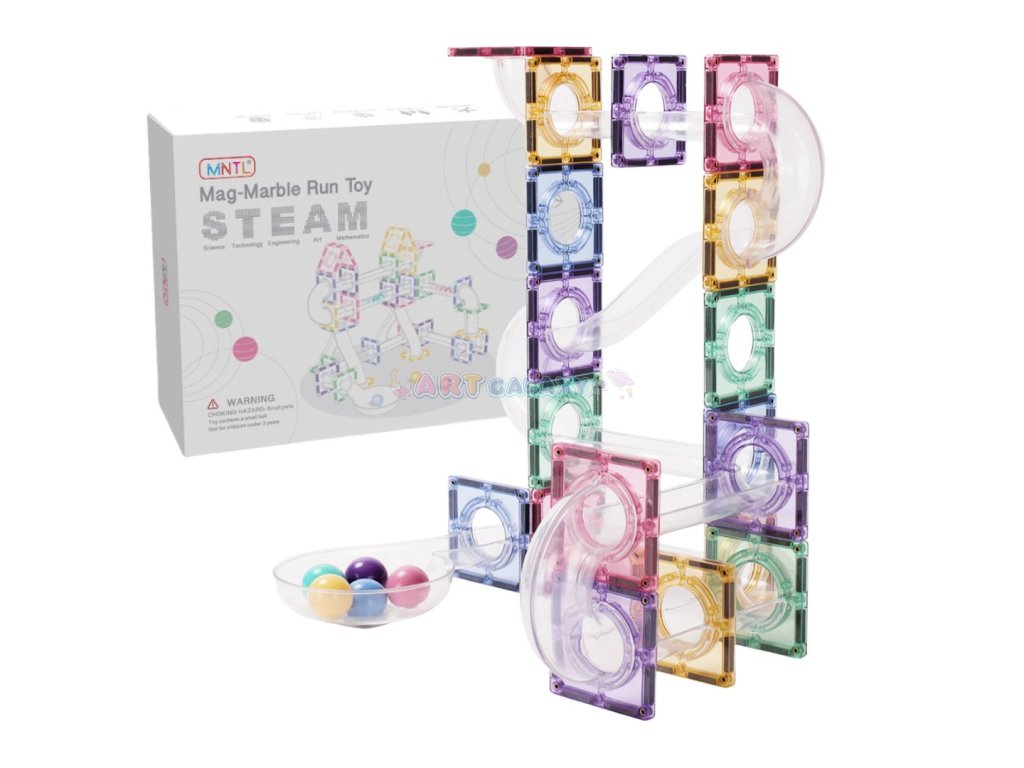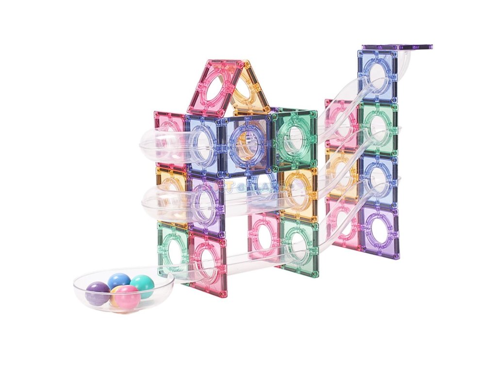 Tato pastelová magnetická kuličková dráha umožňuje dětem stavět vlastní konstrukce a sledovat pohyb kuliček v průhledných trubicích. Jemné barvy a stabilní magnetické spojení podporují klidnou a soustředěnou hru, která rozvíjí technické myšlení i kreativní přístup.