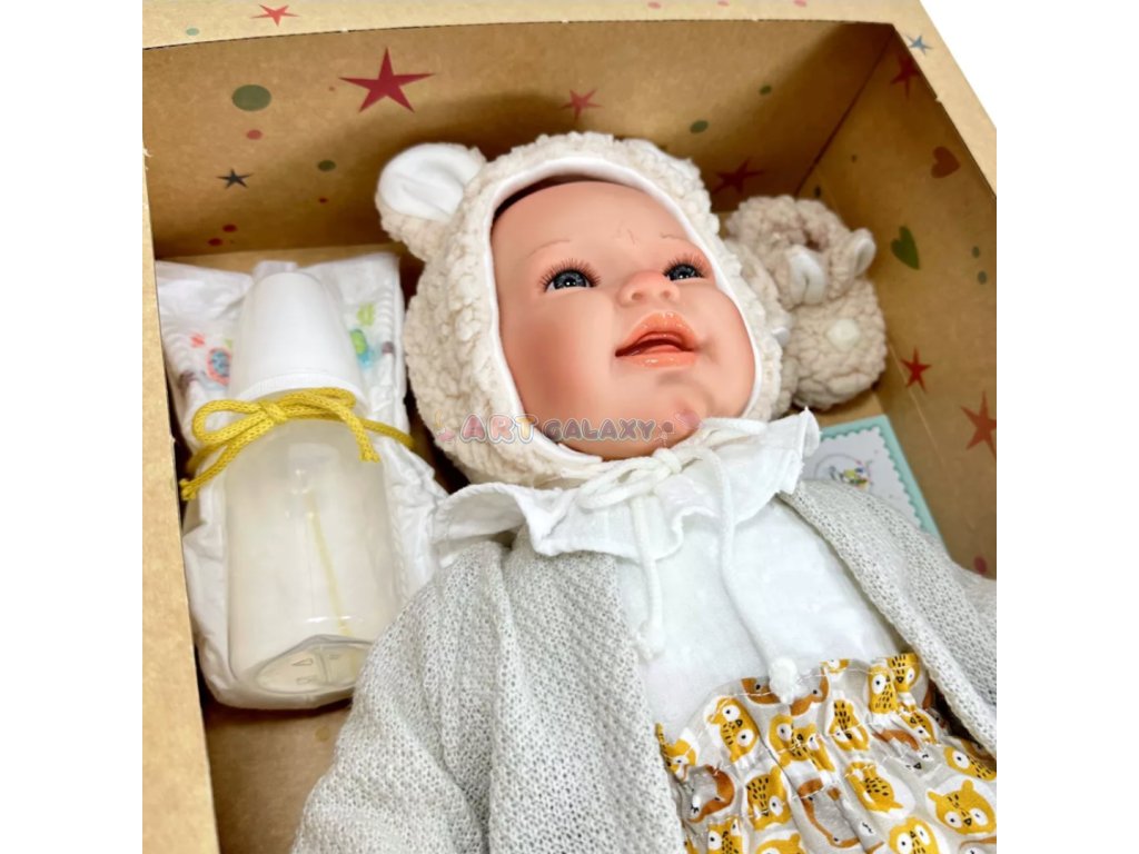 Určeno pro děti i dospělé sběratele. Značka Nines d’Onil patří k nejuznávanějším výrobcům realistických panenek v Evropě a své produkty ručně vyrábí ve Španělsku z bezpečných, certifikovaných materiálů. Panenka je doporučována pro rozvoj empatie, jemné motoriky a představivosti.