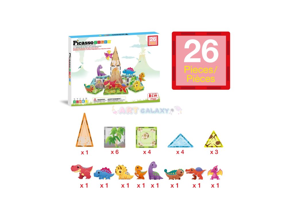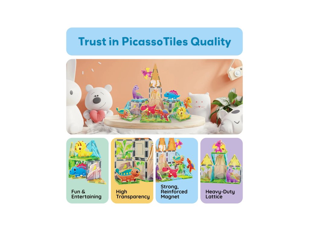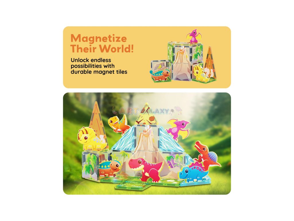 Sada Dinosaur World umožní dětem vytvořit vlastní jurský svět plný dinosaurů. Díky potištěným magnetickým dílkům a osmi dinosauřím figurkám mohou malí stavitelé vytvářet krajiny, vymýšlet příběhy a ponořit se do fantazie plné akce i zábavného poznávání.