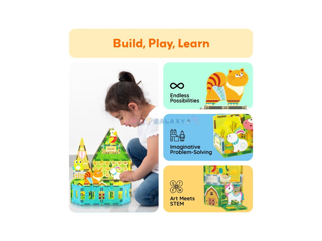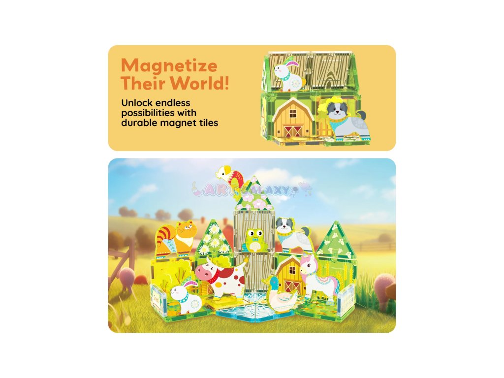 Objevte kouzlo venkova s podzimní atmosférou! Sada Farma podzim spojuje potištěné magnetické dílky s motivy přírody a 8 roztomilých zvířecích figurek. Děti si mohou postavit vlastní farmu, vytvořit nové příběhy a objevovat svět fantazie prostřednictvím hry, která rozvíjí jemnou motoriku i představivost.