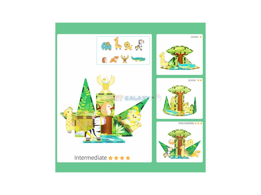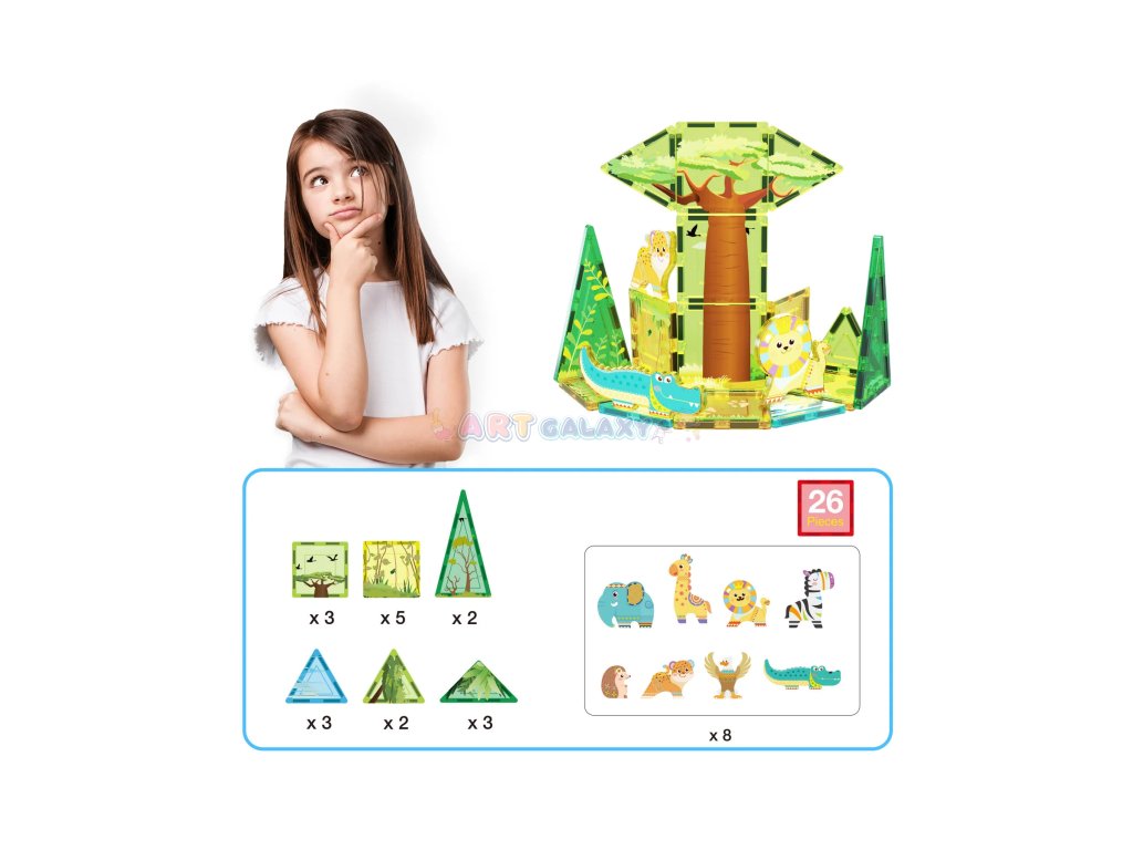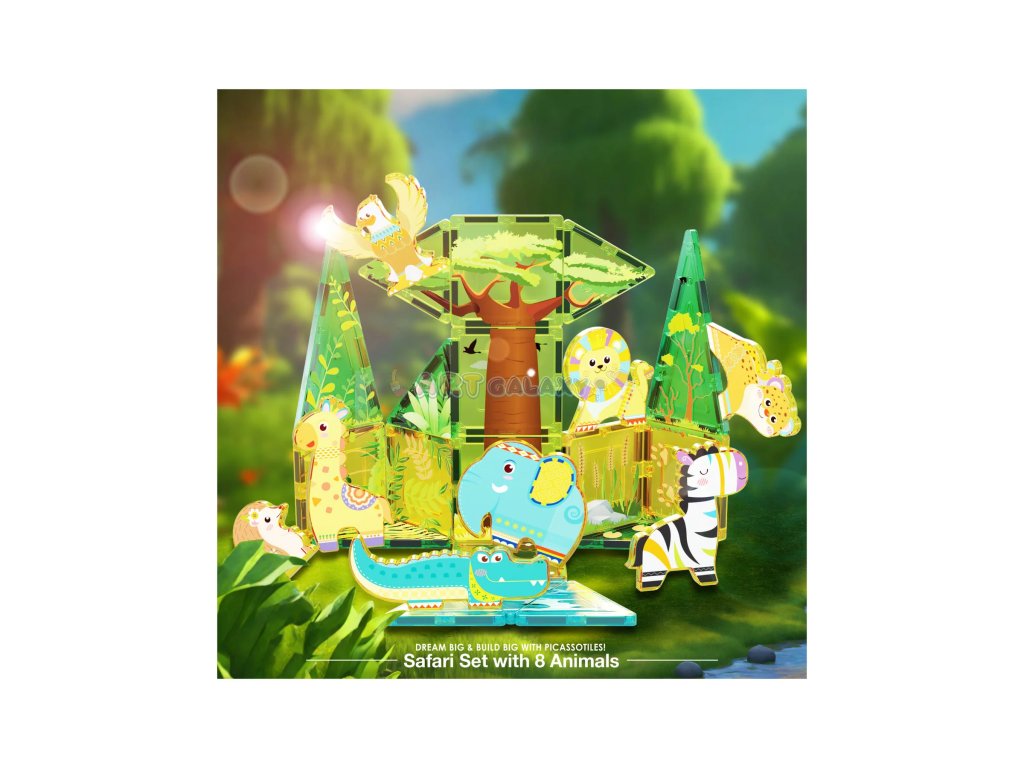 Sada Safari Explorer přináší potištěné magnetické dílky a figurky divokých zvířat, díky nimž si děti mohou postavit vlastní safari plné napětí a objevování. 🦁🐘🦓