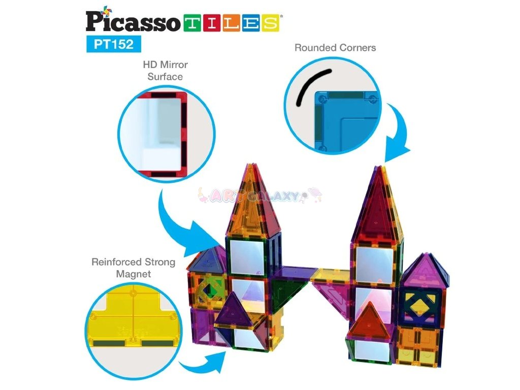 PicassoTiles Magnetická Stavebnice s Designovými a Zrcadlovými Dílky 152ks