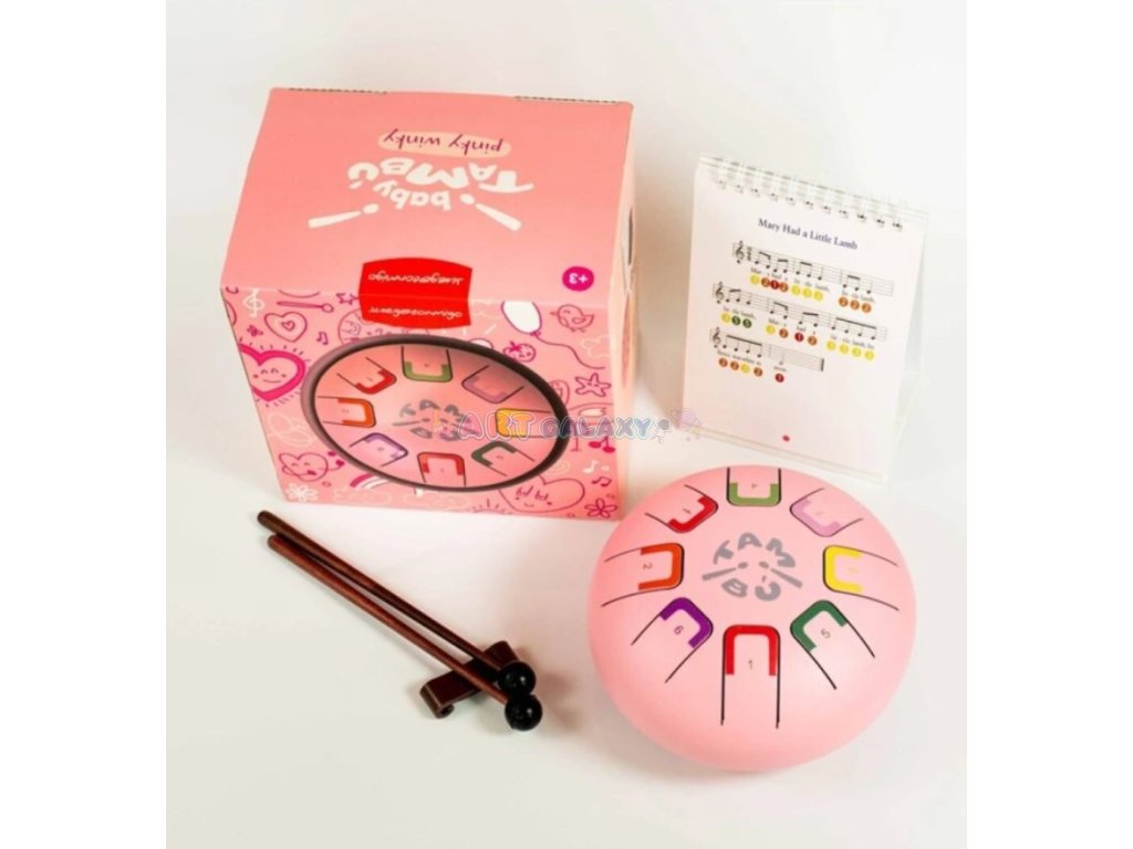 Tambú Baby je menší verze oblíbeného kovového bubínku TAMBÚ, která je ideální pro malé hudebníky. Barevně označené noty a jemný, relaxační zvuk z něj dělají perfektní nástroj pro první hudební krůčky.