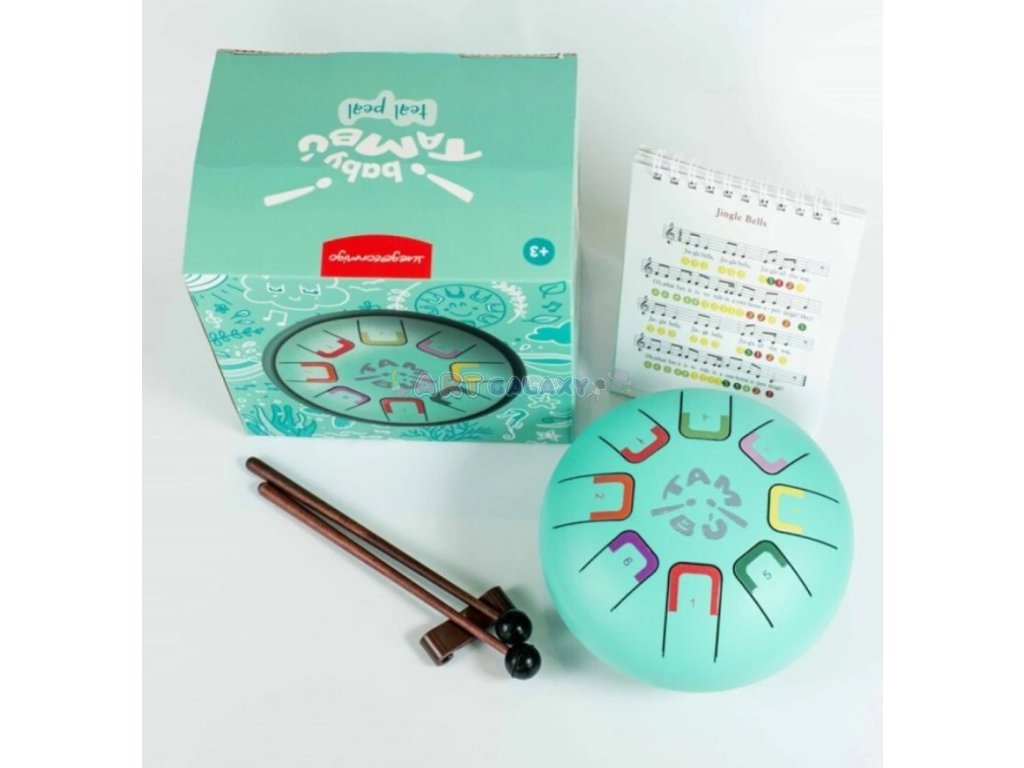 Tambú Baby je menší verze oblíbeného kovového bubínku TAMBÚ, která je ideální pro malé hudebníky. Barevně označené noty a jemný, relaxační zvuk z něj dělají perfektní nástroj pro první hudební krůčky.