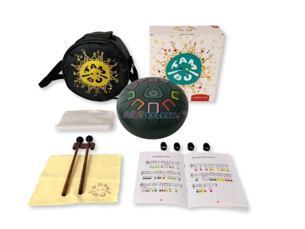 TAMBÚ je krásný kovový bubínek s melodickým zvukem, který si zamilují začátečníci i pokročilí hráči. Je ideální volbou pro děti i dospělé a nabízí radostné chvíle každému, kdo touží proniknout do světa hudby.