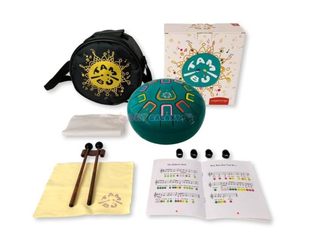 TAMBÚ je melodický kovový bubínek laděný v G dur, který okouzlí sametovým zvukem a barevným značením not. Perfektní pro děti i dospělé – bez předchozí zkušenosti s hudbou!